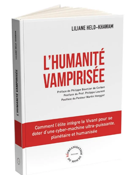 Nous avions en août 2025 réalisé une recension de Dépossession, livre publié en 2018 et faisant partie d’une trilogie avec Coup d’état planétaire en 2019 et L’humanité vampirisée en 2024. Si Dépossession nous avait impressionné dans ce que son auteur, Liliane Held-Khawam, dénonçait et explicitait de la haute finance, L’humanité vampirisée est sidérant. Il est à lui seul, dans ses 578 pages, un véritable mémoire (au sens juridique), une mise en lumière et en compréhension de la trame transhumaniste : les protagonistes, leurs motivations, leur modus operandi, leurs ramifications et les emprises qu’ils exercent. Il est aussi le signal d’alarme, le cri de détresse qui fait frissonner jusque dans ses entrailles de celui qui a conscience de l’horreur qui va se produire et, désespéré, tente de l’empêcher tel Martin Niemöller, Hannah Arendt, Günter Anders, etc.