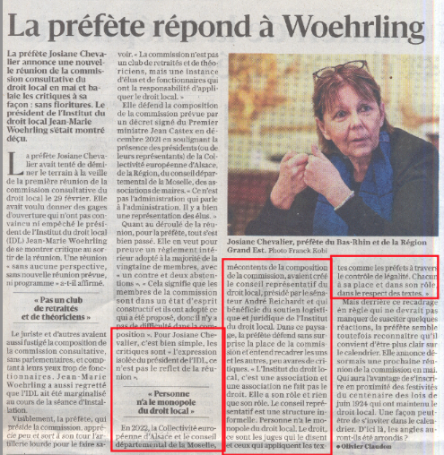 Pourtant, l’administration centrale française est ignorante en matière de droit local. Une sénatrice d'Alsace a même proposé que les collectivités territoriales qui ne connaissent pas plus le droit local, pouvaient se tromper et de leur reconnaître un droit à l'erreur.