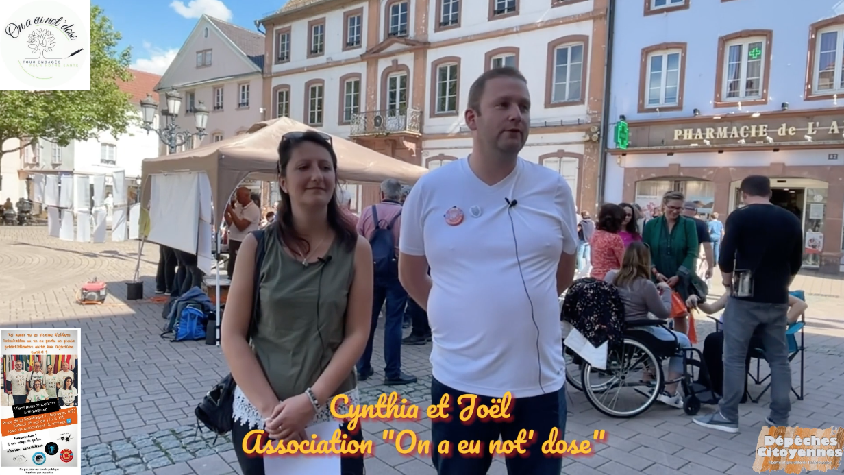 Les pluies diluviennes ont cessé le temps de ces rencontres à Haguenau, en Alsace, ce samedi 18 mai et c'est sous un grand soleil que les collectifs et victimes d'effets secondaires des injections Covid-19 ont pu se retrouver, prendre la parole et témoigner. Julia Walter, victime, était à l'initiative de ces rencontres, aidée par la toute nouvelle association alsacienne « On a eu not'dose ».