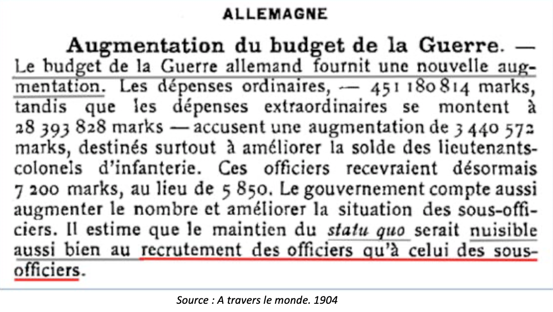 L’Allemagne augmente son budget de la guerre contrairement à ce qui était convenu dans la Convention de 1899.